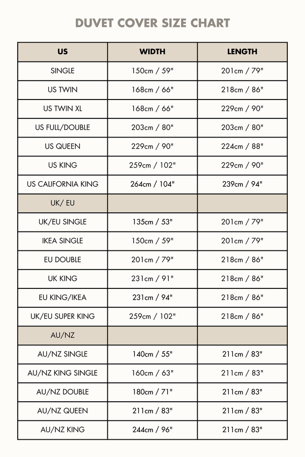 Please note that the above size chart is a guide and may vary slightly. If you would like assistance, please contact us HERE.