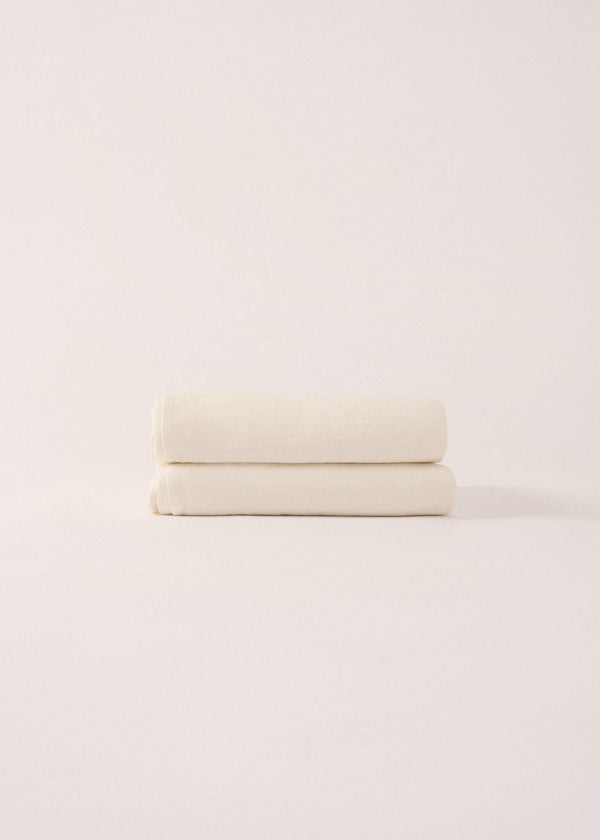 - Linen fitted sheet with elastic hem