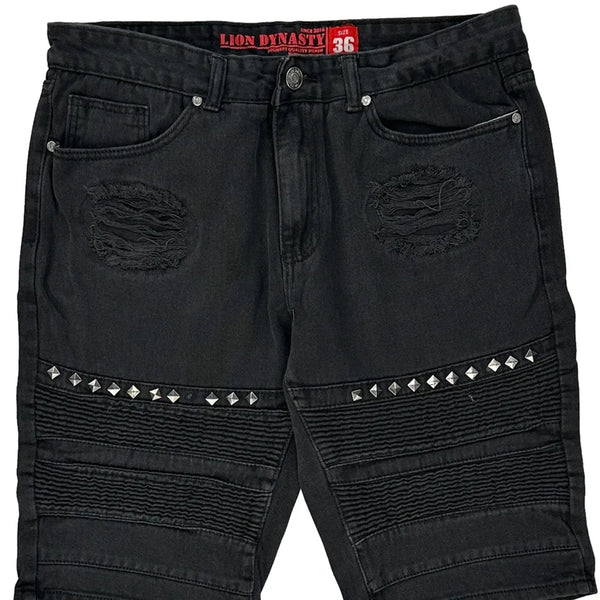 Lion Dynasty Denim Shorts, fit a 36″ Waist and 12″ inseam.