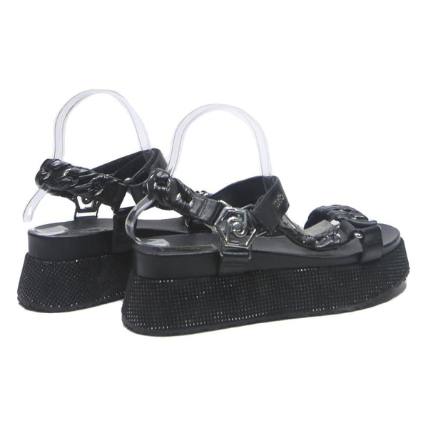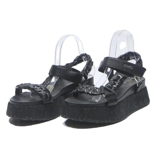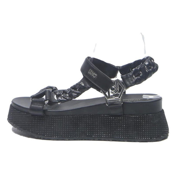 LIU.JO Womens Black Leather Platform Sandals UK 6 Stylish Comfortable Adjustable