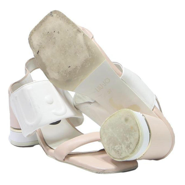 LIU JO Womens Block Heel Sandals Beige & White Leather UK 4 Stylish Comfortable
