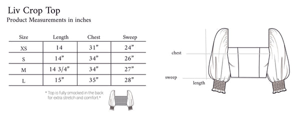 Made for basking in the sun or a chill Friday night out, the Liv Crop Top is a dreamboat of a blouse that boasts a fully smocked back bodice and - our favorite part - elasticity at the shoulders so you can be in control of letting it rest on or off those gorgeous shoulders.