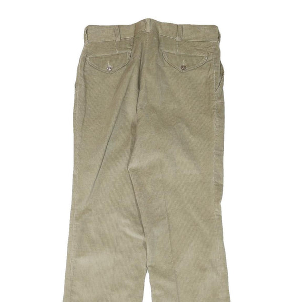 The trousers have a smooth texture with subtle corduroy detailing typical of the cotton blend fabric. The back includes two buttoned flap pockets adding to the functional design. These trousers suit casual or semi-formal wear and provide a timeless addition to any wardrobe.