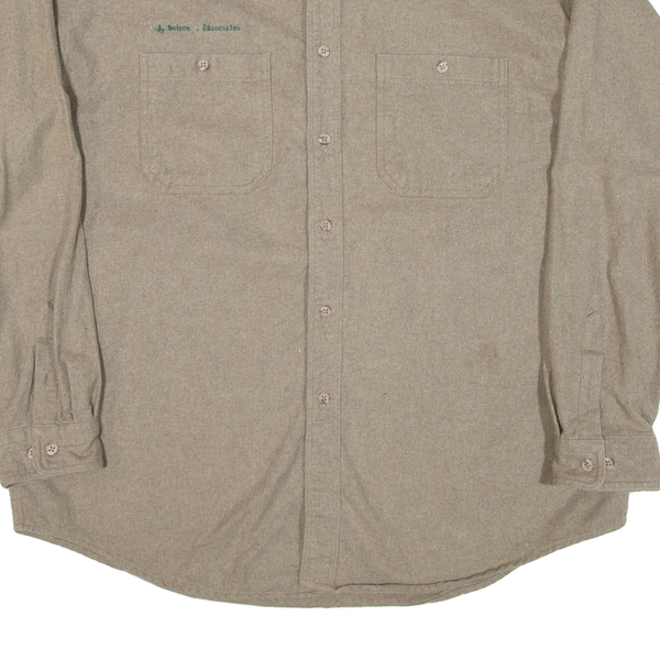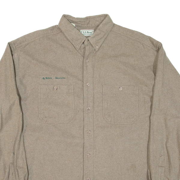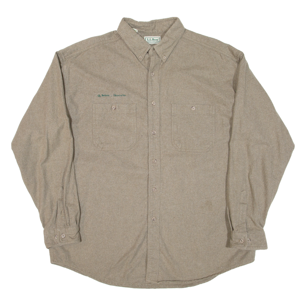 LL BEAN Mens Flannel Shirt Beige Long Sleeve XL