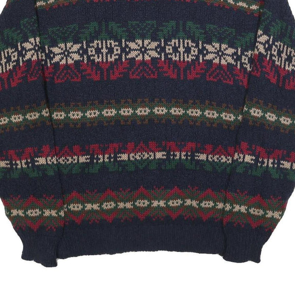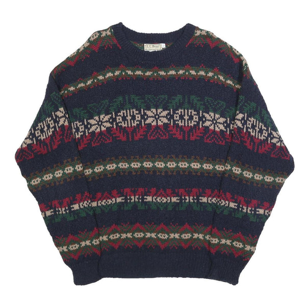 Ll bean mens navy blue patterned cotton jumper crew neck chunky knit l