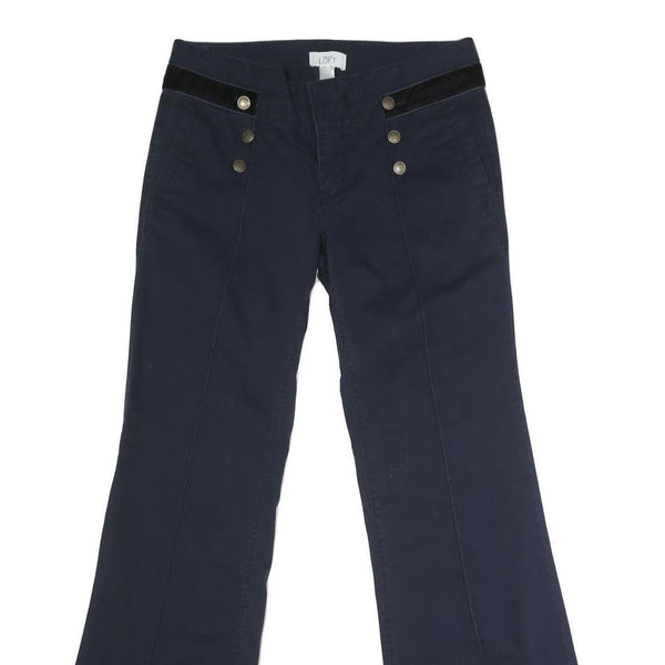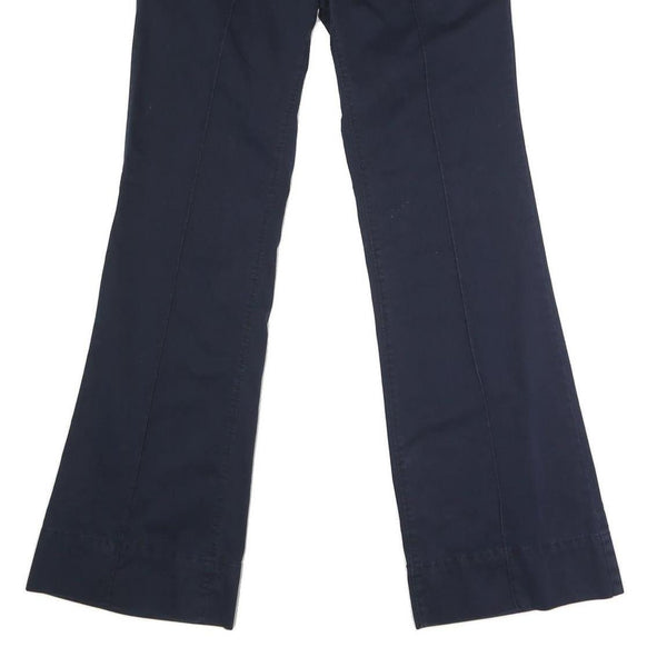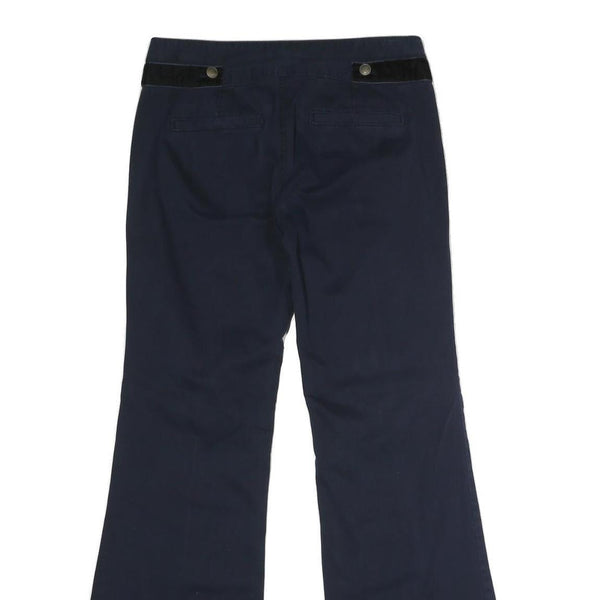 Home LOFT Womens Cotton Blend Navy Regular Fit Flared Trousers W30 L33 Stylish Button