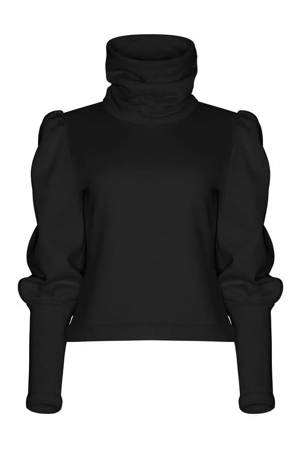 Full bishop sleeves emerge from tucked shoulders and an augmented turtle neck. These twists on the classic jumper give the Logi a sense of power and a dramatic streak.