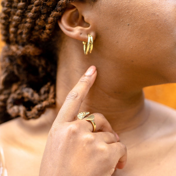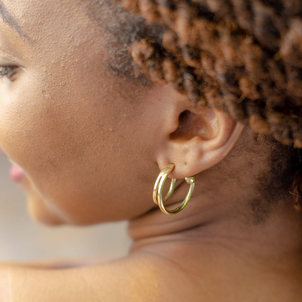 Meet the perfect earrings for your casual denim look. Elegant double hoops with a rounded corner