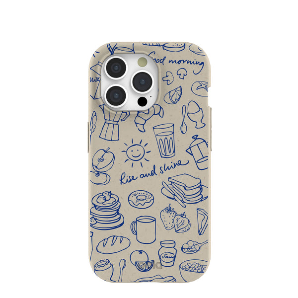 ☕ Wake up with a smile every morning with the Rise and Shine Phone Case by Pela! This cheerful design features charming doodles of your favorite breakfast items—croissants, pancakes, coffee, and more—alongside positive messages like "Good morning" and "Rise and shine." The delightful blue sketches on a cozy beige background make this case a perfect companion to start your day on a bright note. Protect your phone with a touch of morning magic and a whole lot of joy—because every day is a good day to rise and shine!