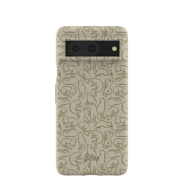 Calling all cat enthusiasts! The Say Meow Phone Case is here to whisker you away to a world of feline fun. Adorned with an enchanting pattern of minimalist cat sketches in serene green on a calming London Fog background, this case is the purr-fect blend of chic and playful. The Say Meow Phone Case not only showcases your love for cats but also for the planet. Meow's the time to add a touch of kitty charm to your daily routine!