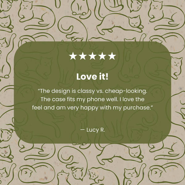 Calling all cat enthusiasts! The Say Meow Phone Case is here to whisker you away to a world of feline fun. Adorned with an enchanting pattern of minimalist cat sketches in serene green on a calming London Fog background, this case is the purr-fect blend of chic and playful. The Say Meow Phone Case not only showcases your love for cats but also for the planet. Meow's the time to add a touch of kitty charm to your daily routine!