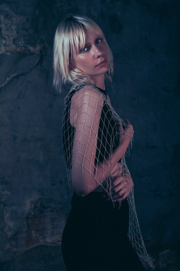 Handcrafted from stainless steel, this chain shawl can be worn over a top or around the neck. Whether you're dressing up for a special occasion or just want to add a touch of luxury to your everyday look, this scarf is the perfect choice to take your outfit to the next level.