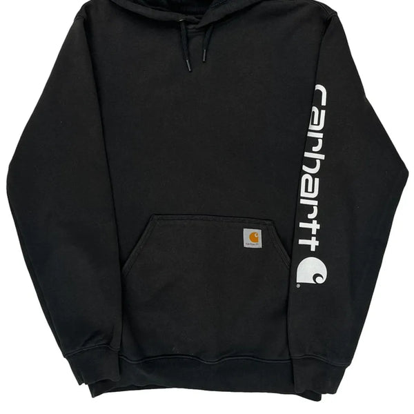 Black Carhartt Hoodie With Spellout Logo On Sleeve.