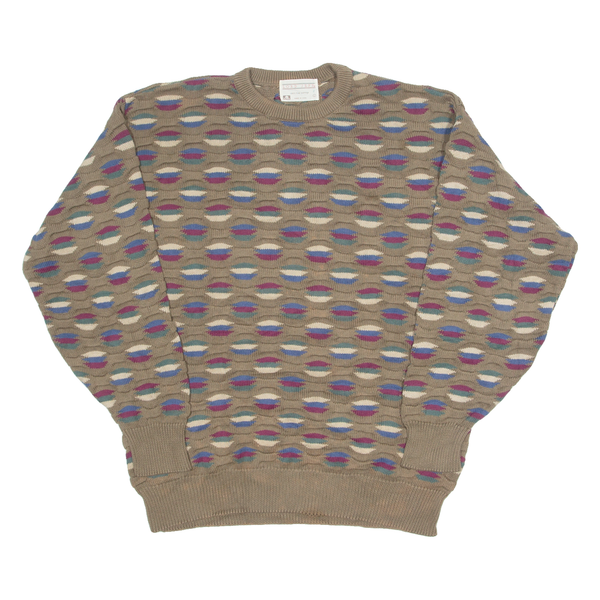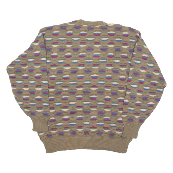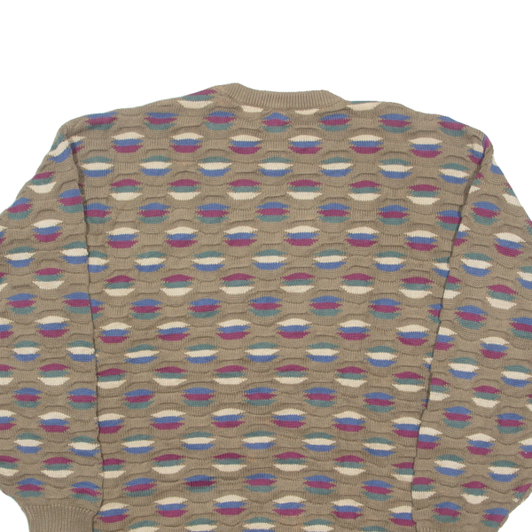 LORD JEFF Mens Patterned Jumper Brown Crazy Pattern 90s Tight Knit L