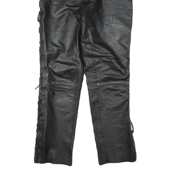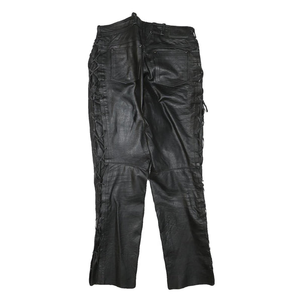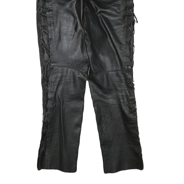 LOUIS Womens Leather Black Regular Straight Trousers W31 L31 Zip Lace-Up Sides