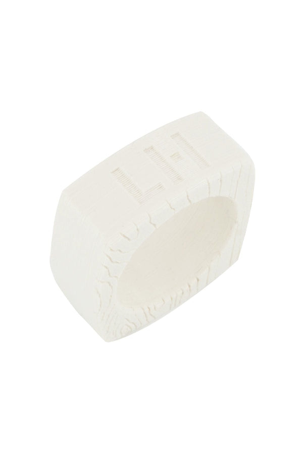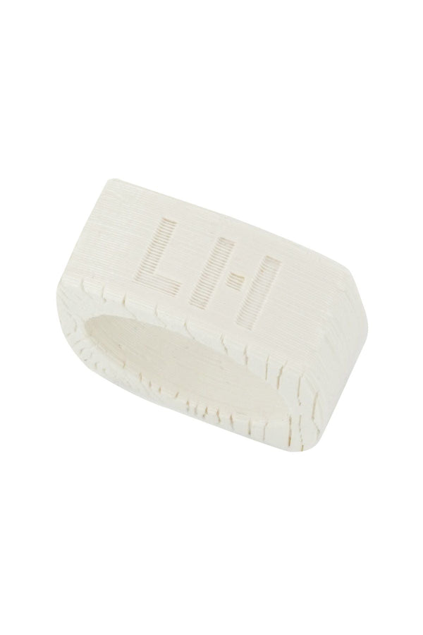 Chunky, statement rounded off square stackable rings engraved with the LH little sister logo. Woodgrain texture on the sides, a nod to nature’s lifeline.