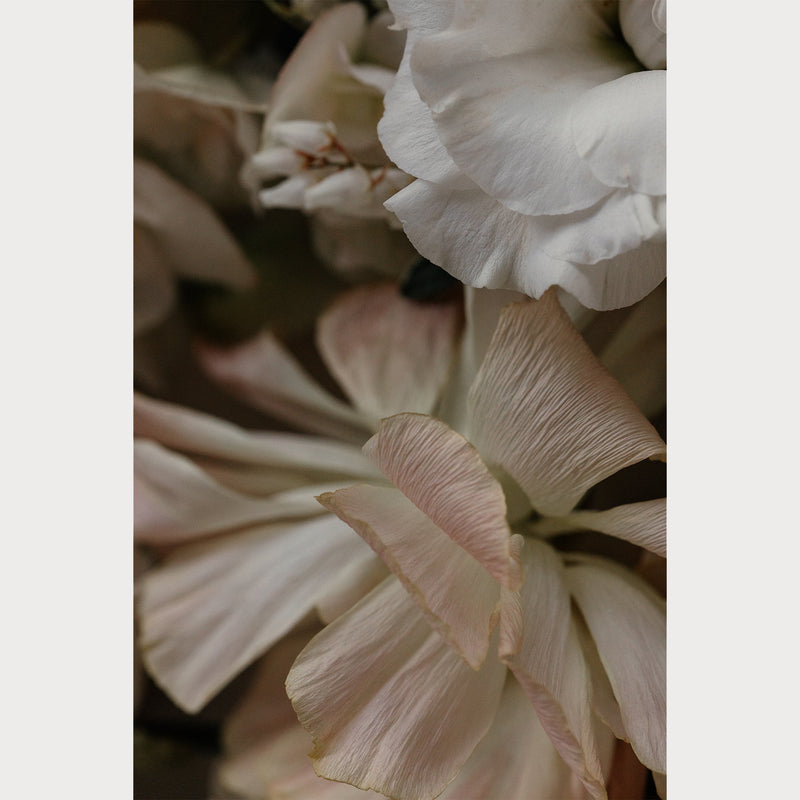 Inspired by Spring blooms such as ranunculus, cosmo, poppy, begonia, pieris, stock and tulips, layered in soft romantic textures. Love Letter is the combination of white and cream Spring florals with hints of soft and peachy pinks. Learn more about Alice de Crom here.