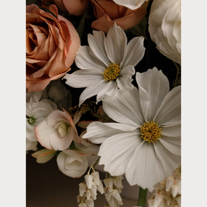 Inspired by Spring blooms such as ranunculus, cosmo, poppy, begonia, pieris, stock and tulips, layered in soft romantic textures. Love Letter is the combination of white and cream Spring florals with hints of soft and peachy pinks. Learn more about Alice de Crom here.