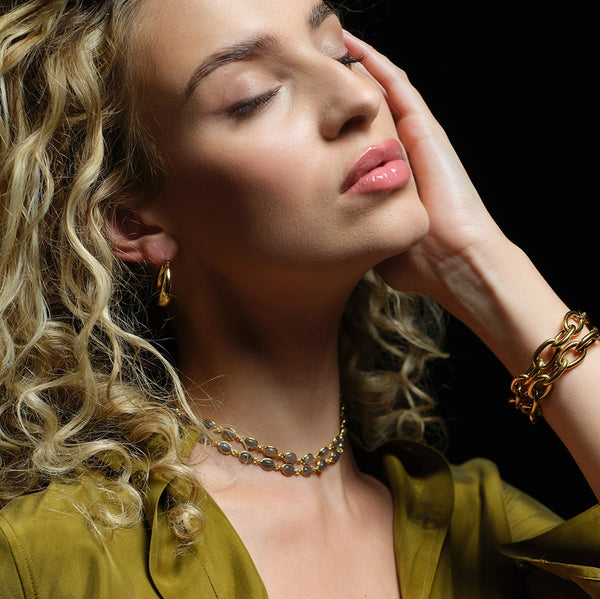 Hand crafted from smooth labradorite pre-loved gemstones, this gold necklace will add glamour to any look - whether worn alone or layered with other Amadeus favourites. The necklace may be worn as a chocker or extended to a longer version.