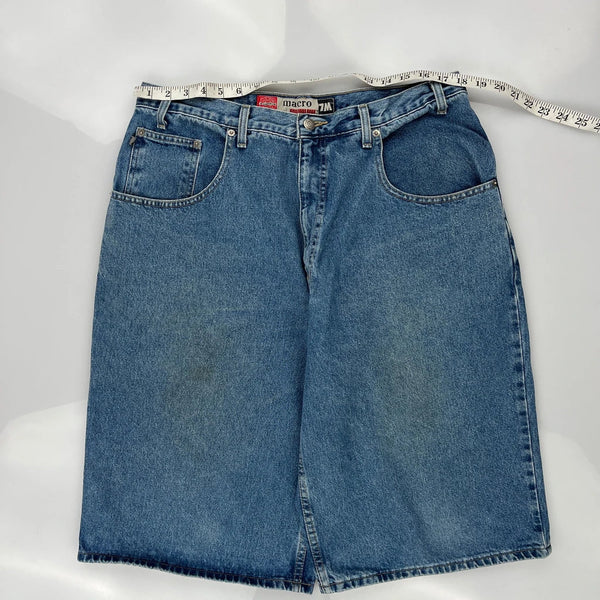 Macro Denim Shorts, fit a 34″ Waist and 11″ inseam.