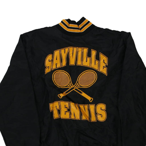Made in usa sayville tennis rennoc varsity jacket - large black nylon blend