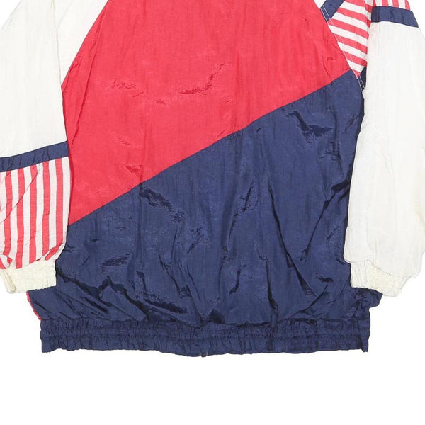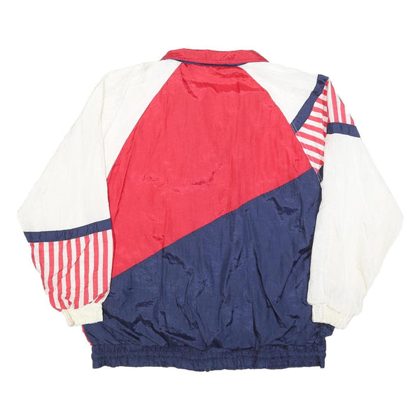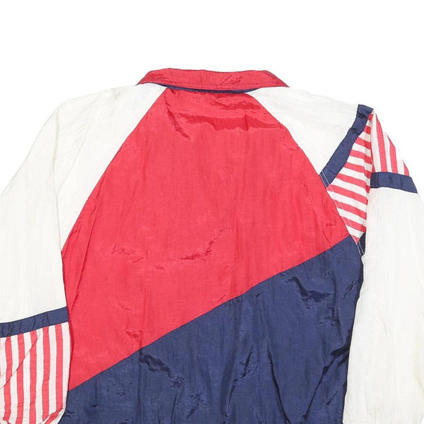 MAGGIE BARNES Womens Red White & Blue Plain Nylon Jacket L Zip Casual Retro