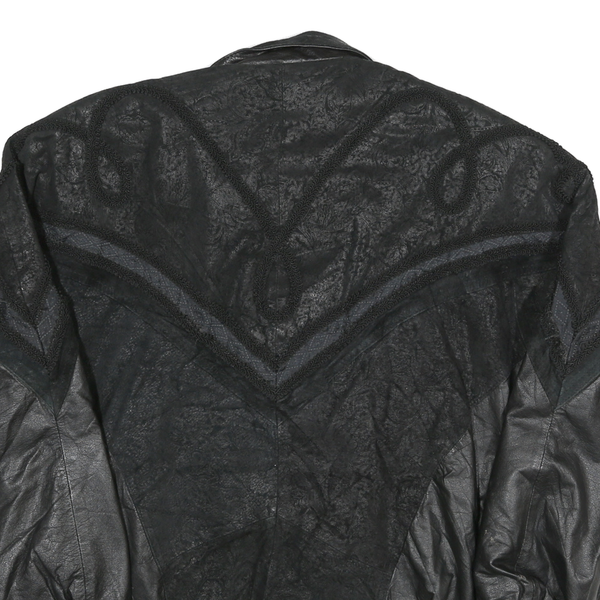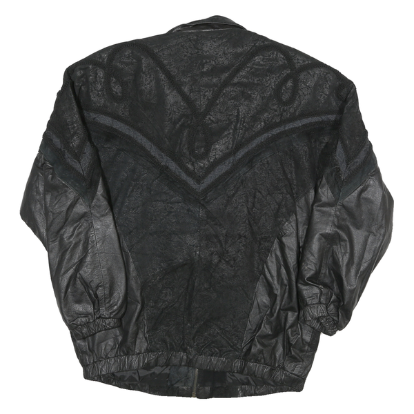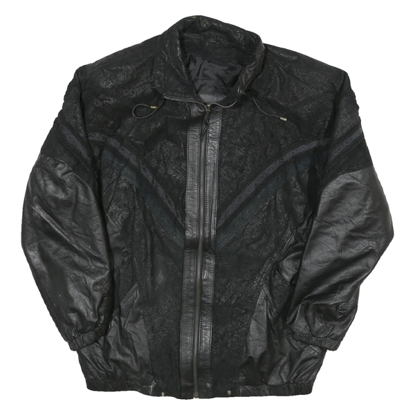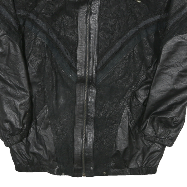 MAGGIE LAWRENCE Mens Black Leather Zip Jacket M Woven Textured Pattern Stylish
