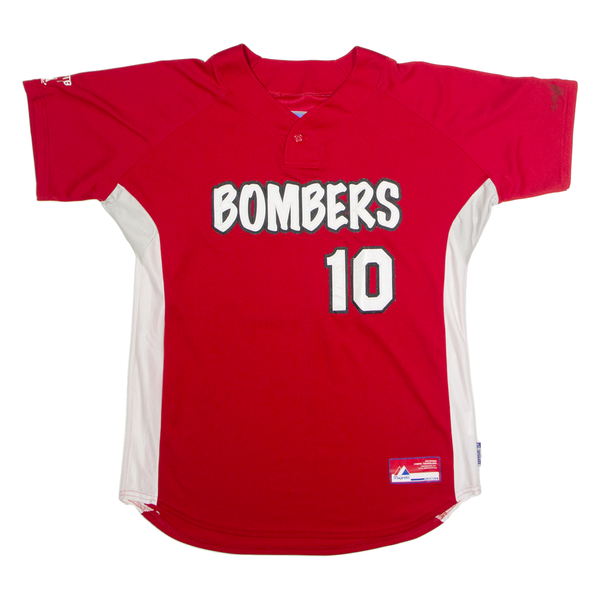 MAJESTIC Bombers #10 Papapietro Mens Jersey Red USA Button Neck XL