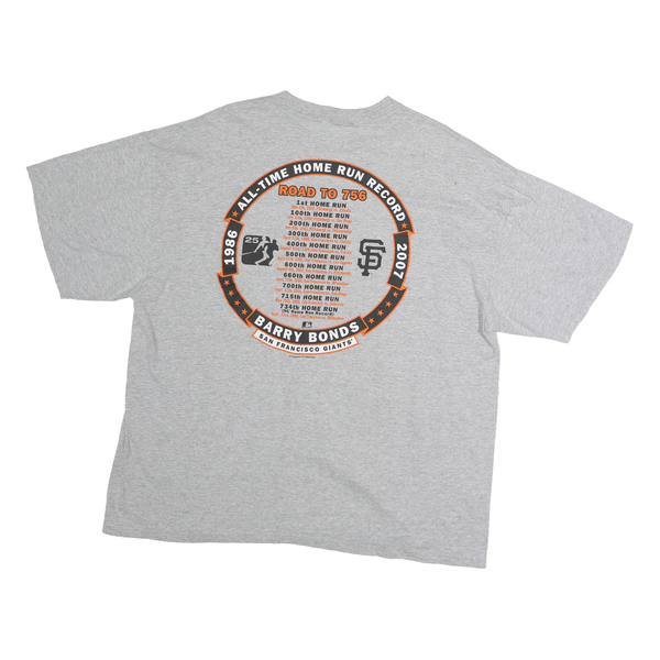 MAJESTIC Mens Grey Barry Bonds Graphic T-Shirt 2XL Short Sleeve Crew Neck Sports