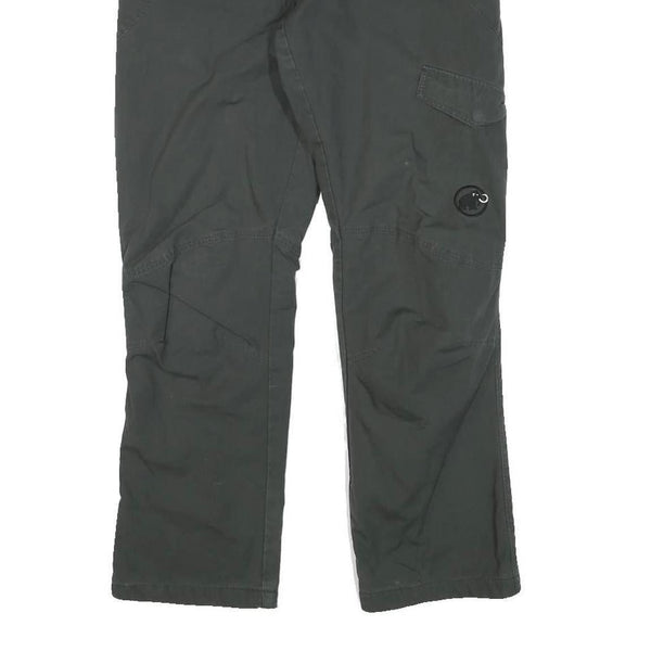 The trousers include a button closure and multiple practical pockets, such as a zippered back pocket and a flap cargo pocket on the leg. Subtle external seams add structure, while discreet MAMMUT branding is embroidered on the back right side.