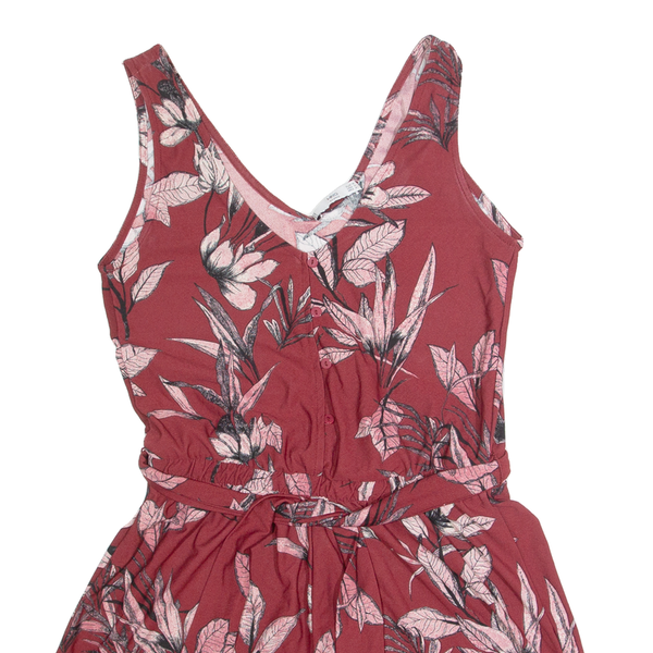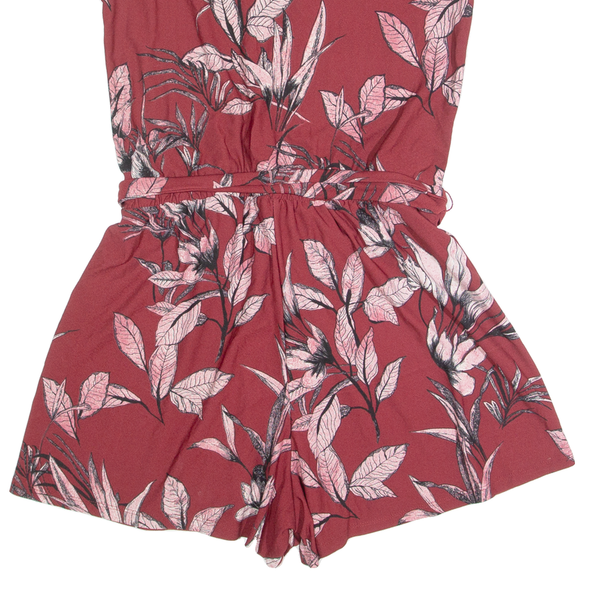 MANGO Belted Womens Playsuit Maroon Floral Wide-Leg M