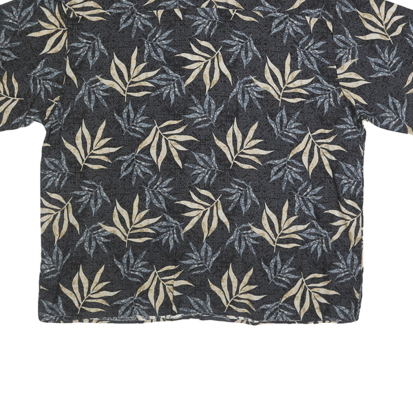 MANHATTAN Mens Black & Cream Floral Rayon Flannel Shirt XL Relaxed Short Sleeve