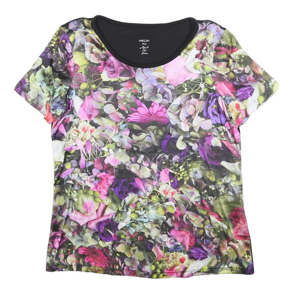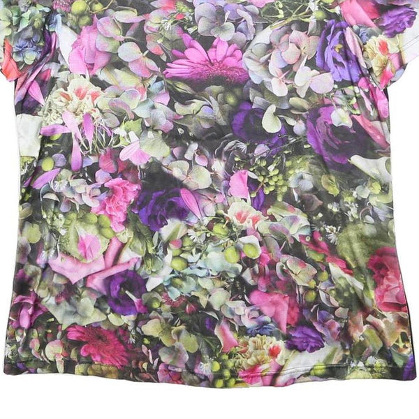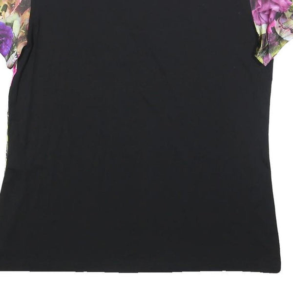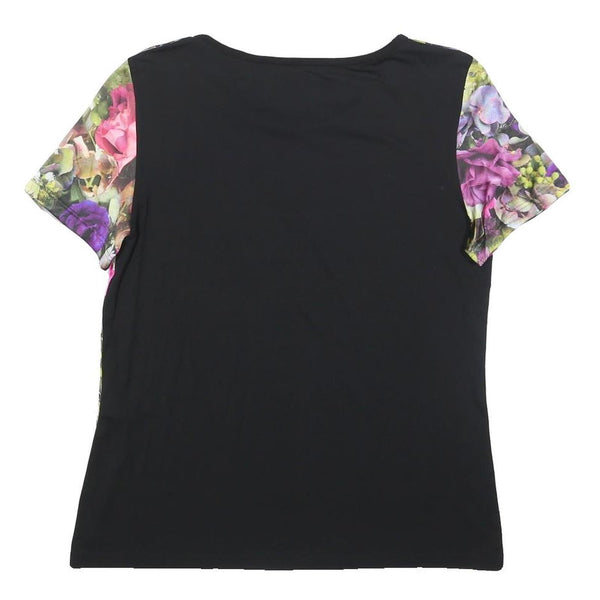 MARC CAIN Womens Black & Purple Floral Modern T-Shirt S Short Sleeve Round Neck