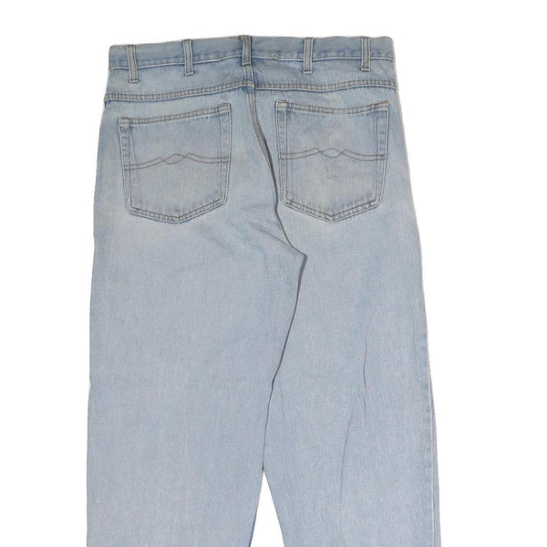 The jeans have a slightly faded wash for a vintage-inspired look, with subtle stitching details on the back pockets. They have a straight leg cut that complements various footwear and outfit combinations. These jeans have been pre-loved and remain in good condition, ready to be worn for casual outings or relaxed occasions.