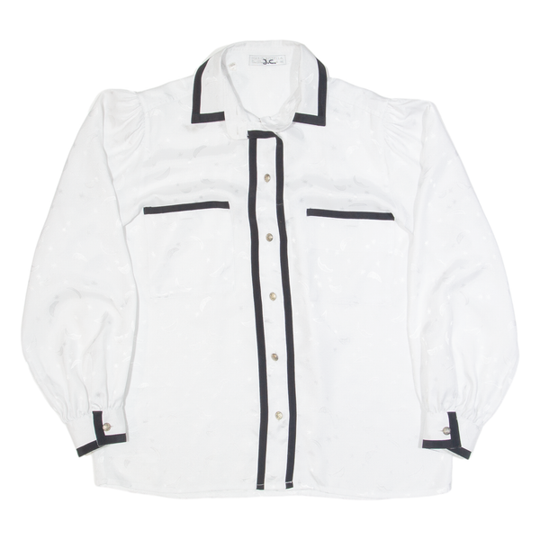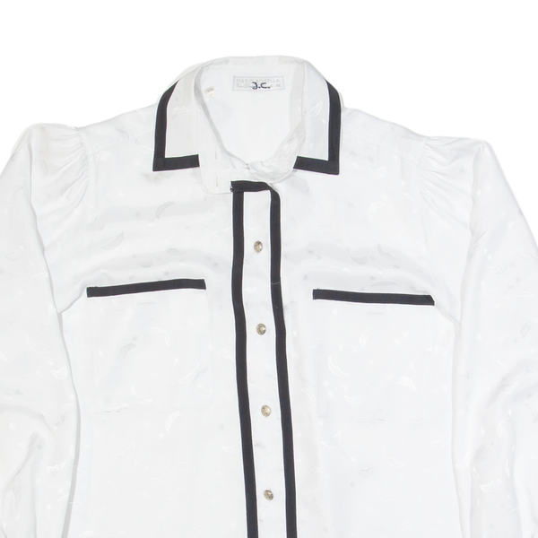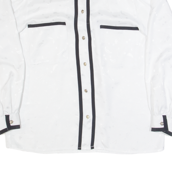 MARIC ROSELLA Womens Printed Shirt White Collared Long Sleeve 90s L