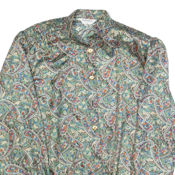 MARK WALD Womens Printed Blouse Green Collared Long Sleeve 90s Paisley M