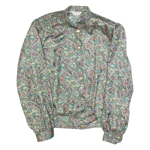 Mark wald womens printed blouse green collared long sleeve 90s paisley m