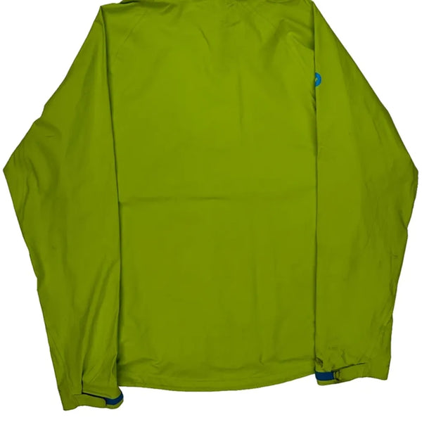 Bright Green Waterproof Jacket With Blue Zipper Details