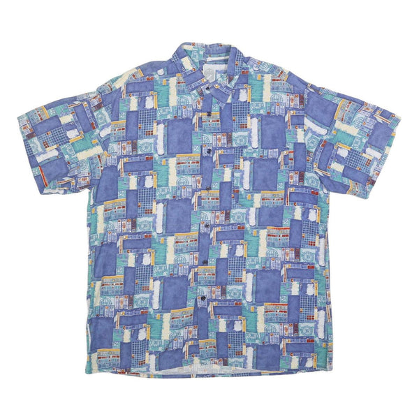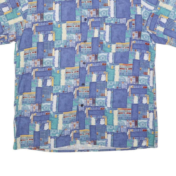 MARSUM Mens Blue Cotton Blend Casual Shirt L Abstract Pattern Short Sleeve