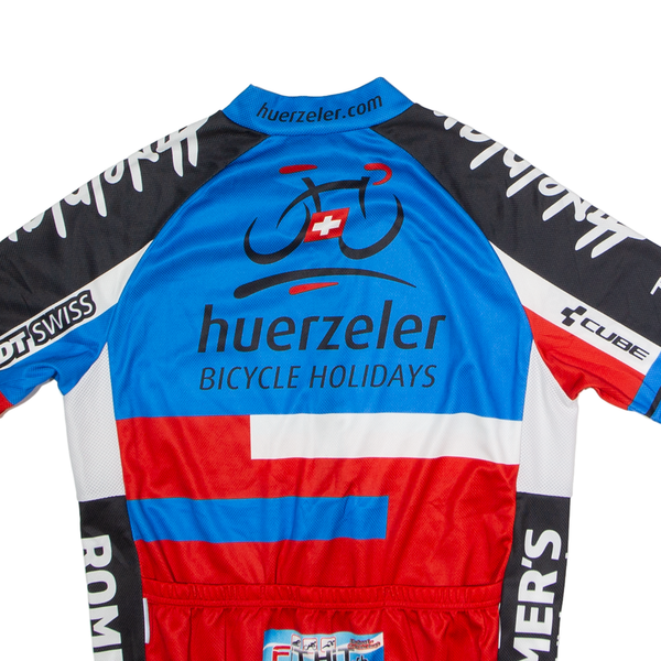 MAX HUERZELER Full Zip Cycling Mens Jersey Blue High Neck M