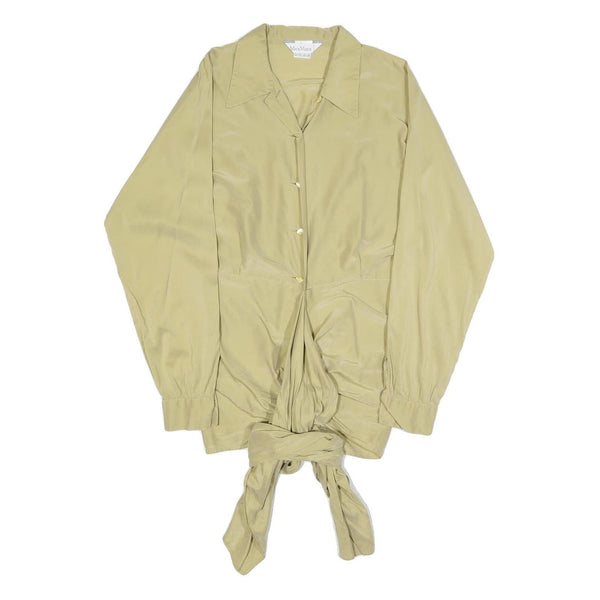 MAX MARA Womens Beige Silk Blend Shirt Long Sleeve Collared S Elegant Tie Hem