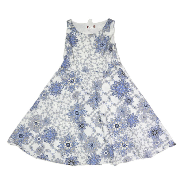 MAX MARA Womens White & Blue Fit & Flare Cotton Blend Dress Sleeveless Midi M