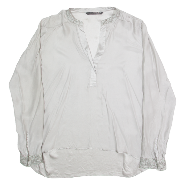 MAX VOLMARY Womens Blouse Grey V-Neck Long Sleeve 90s S