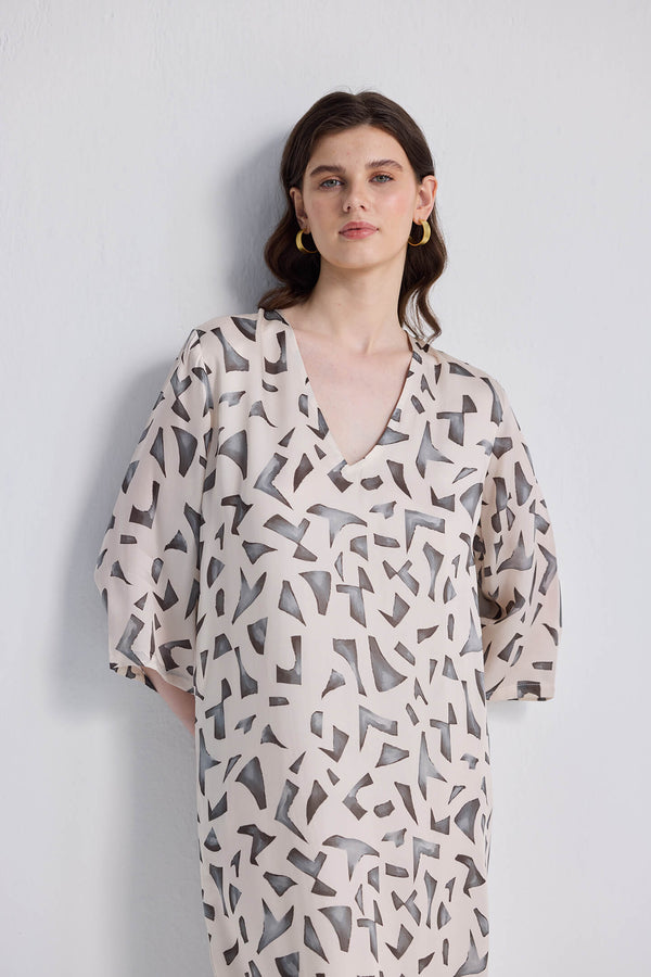 This boxy slip dress with side slits is the perfect mix of laid-back chic and bohemian luxury. Crafted from eco-friendly Bemberg™ crepe, it features a stunning mosaic-inspired patchwork print that adds elegance to any occasion. Its smooth fabric and versatile design make it a must-have for effortless style!