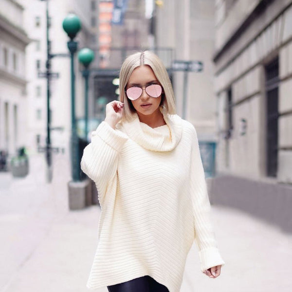 In collaboration with beauty guru, wife, and mother to three beautiful girls, Megan Hannigan, we designed these sunnies for the everyday girl that wants to make a statement of not being average. The luxurious rose gold lens and jet black frame aviators is a modern take on a classic style. The frames are the same style aviators as the Amelia Sunnies.