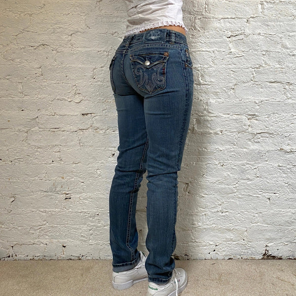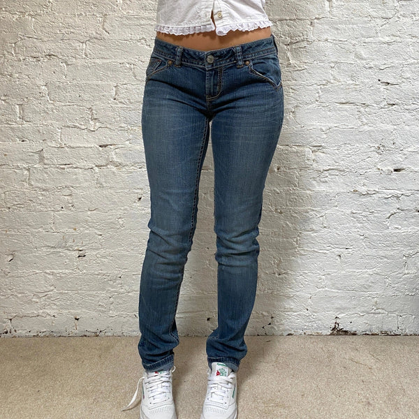 Vintage Mek Dnm blue jeans, fit a UK size 10 - low waisted with a 32" waist.