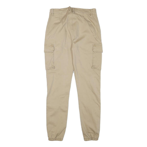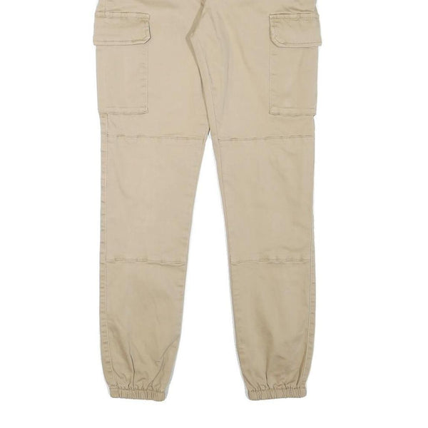 Mens Beige Cotton Blend Slim Cargo Trousers W26 L27 Zip Closure Elastic Hem