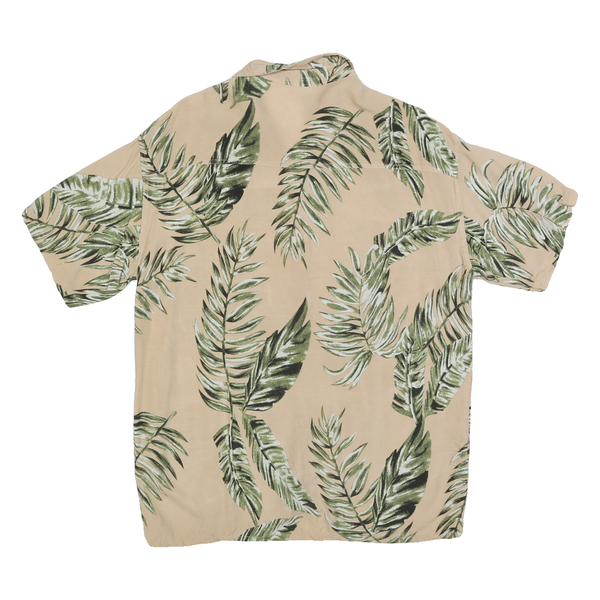 Mens Beige Leaf Print Shirt L Short Sleeve Casual Polyester Summer