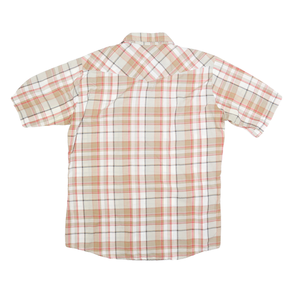 Mens Beige & Red Plaid Cotton Shirt L Button Short Sleeve Casual Summer Wear