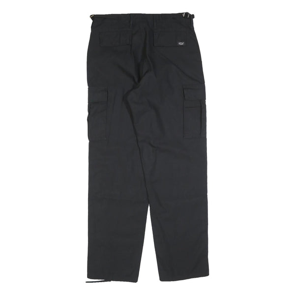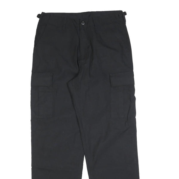 Mens Black Cotton Blend Regular Fit Cargo Trousers W30 L32 Workwear Utility Zip